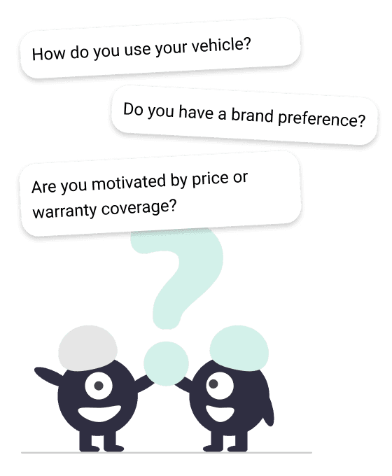We learn about a customer's driving habits, budget, and preferences.
